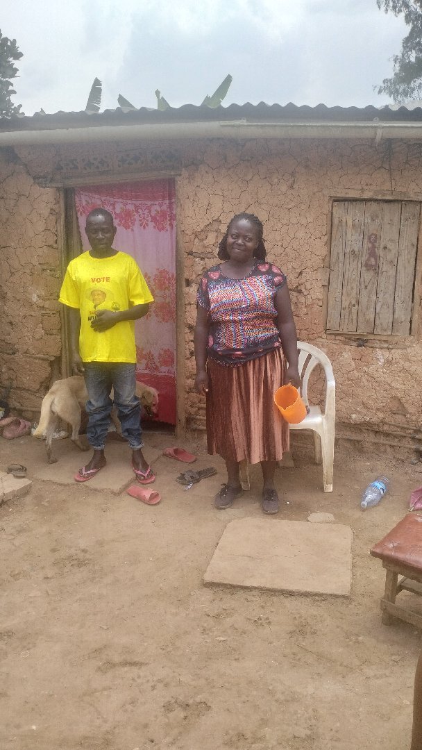 she has a family of three children and her husband drives someone's boda boda. where by his income is low which makes it difficult to support his family with school fees, medical, housing, basic needs.