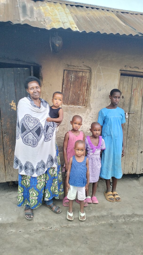 Rovina lives with her children and grandchildren. she is a single mother who digs for people to find what to eat with her family, lacks school Fees, clean water, clothes among other necessities